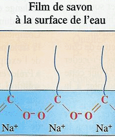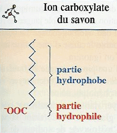 En effet, les ions carboxylates en ayant leur partie hydrophobe en interaction avec les molécules organiques et leur partie hydrophile en interaction avec les molécules d’eau, peuvent empêcher les émulsions de se séparer en une phase grasse (huile) et une phase aqueuse (eau).